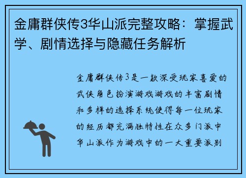 《坎公骑冠剑》中的“神圣之井”是一个富有挑战性和深度探索内容的副本,玩家可以通过探索这一区域解锁奇遇与秘密,获得丰富的奖励。本文将详细解析神圣之井的探索过程,分为四个方面来阐述,帮助玩家更好地理解这一副本的魅力和攻略要点。首先,我们将介绍神圣之井的背景与基本概况,其次,详细分析如何顺利完成奇遇任务,...